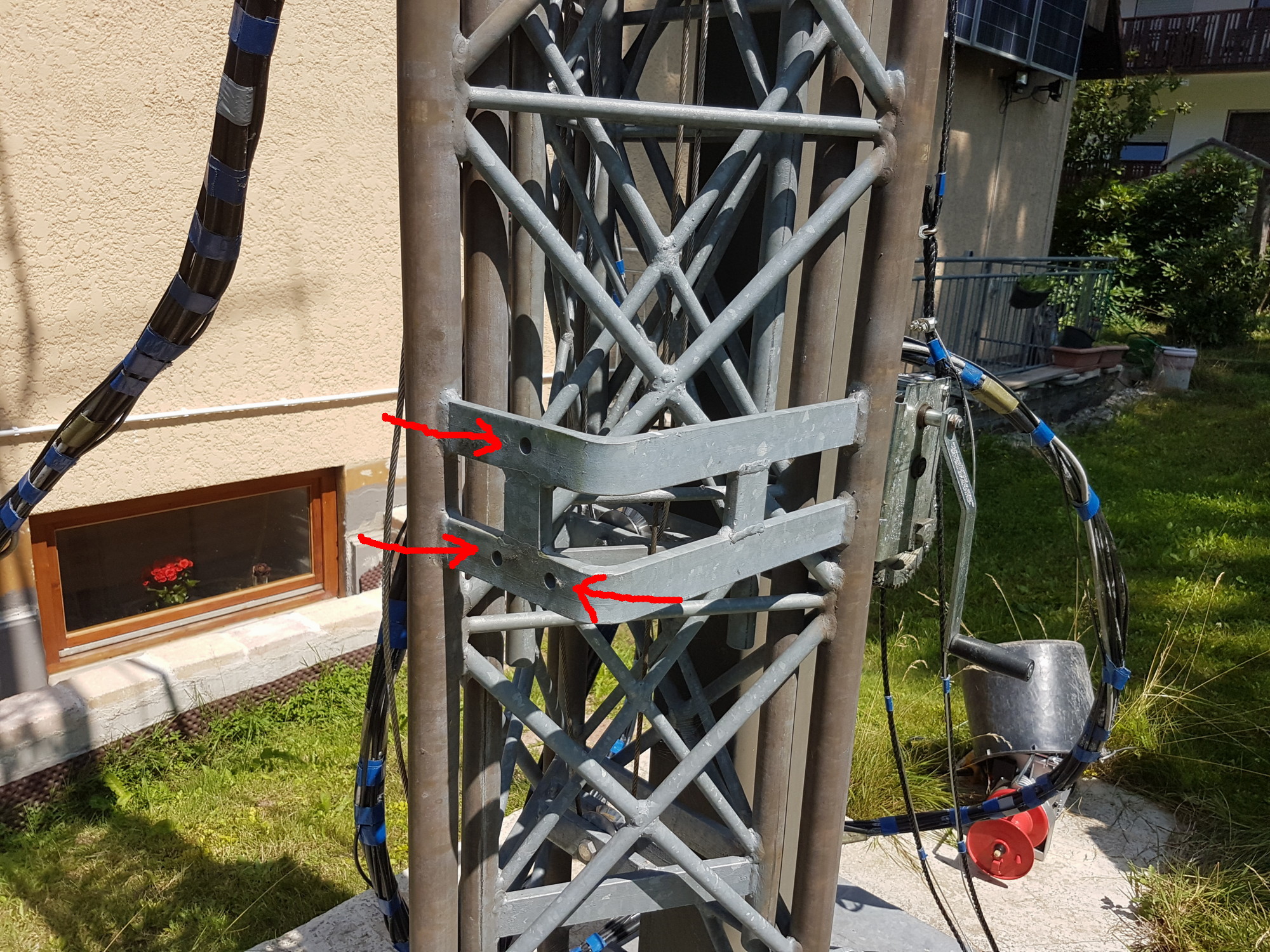 24th July 2017 despite of some rain I managed to fix the first 3 (of 9) antennas at the tower