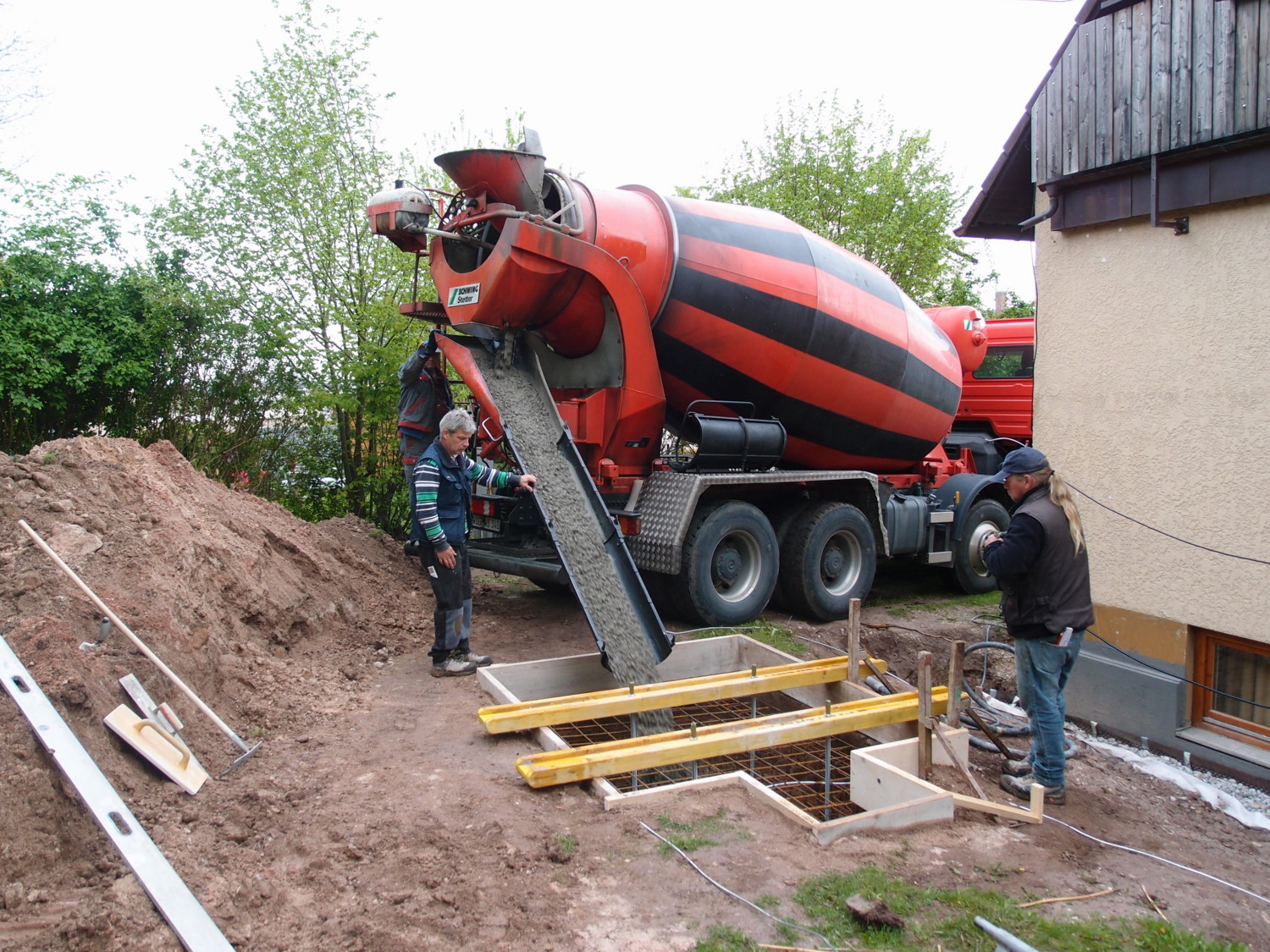 2 earthpools for grounding are in the basement, each 3m long. And in addition to the normal planned basement I made a 60x60cm head piece so I have the opportunity to fix a winch there.