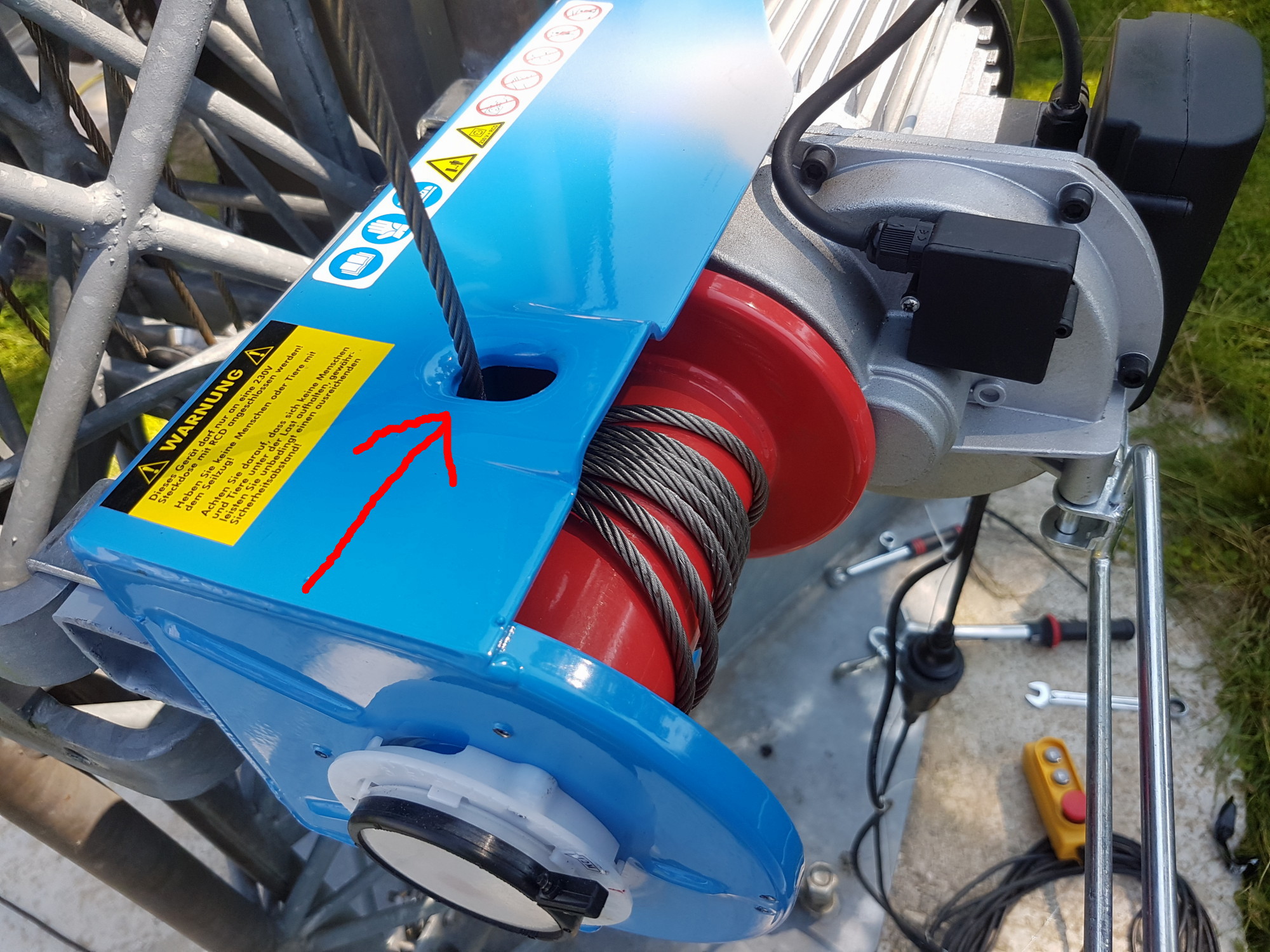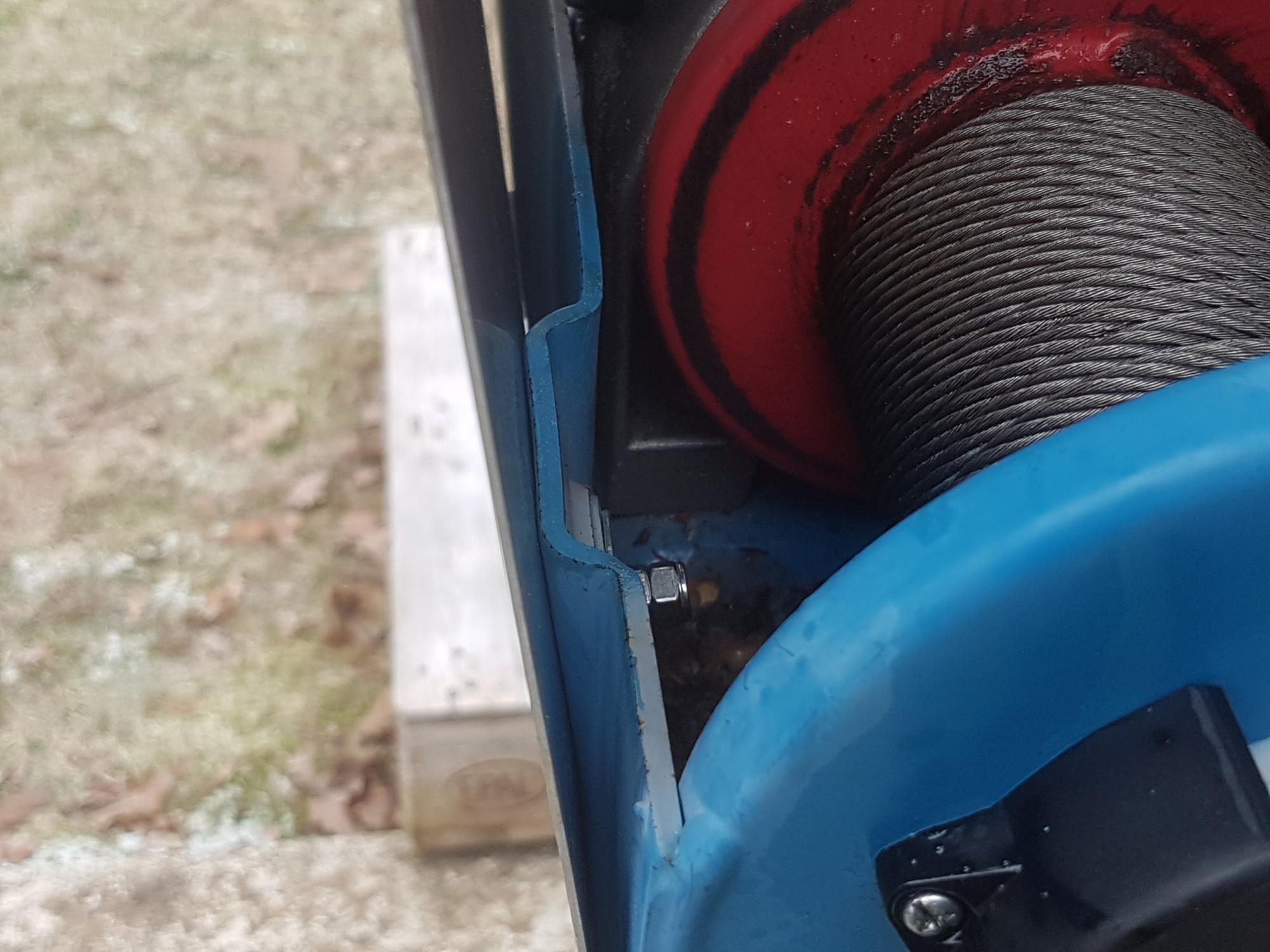 First problem was that the winch was moving up in the fixation when it worked and then stopped working, second the cable was scratching at the hole of the chassis.