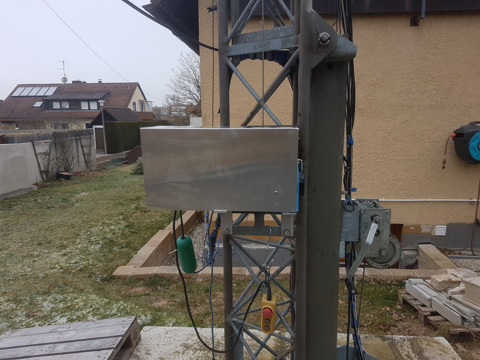 For the 230V connection I mounted an outlet at the wall which can be locked and I have to switch on power with a switch so not everybody can play with the winch.